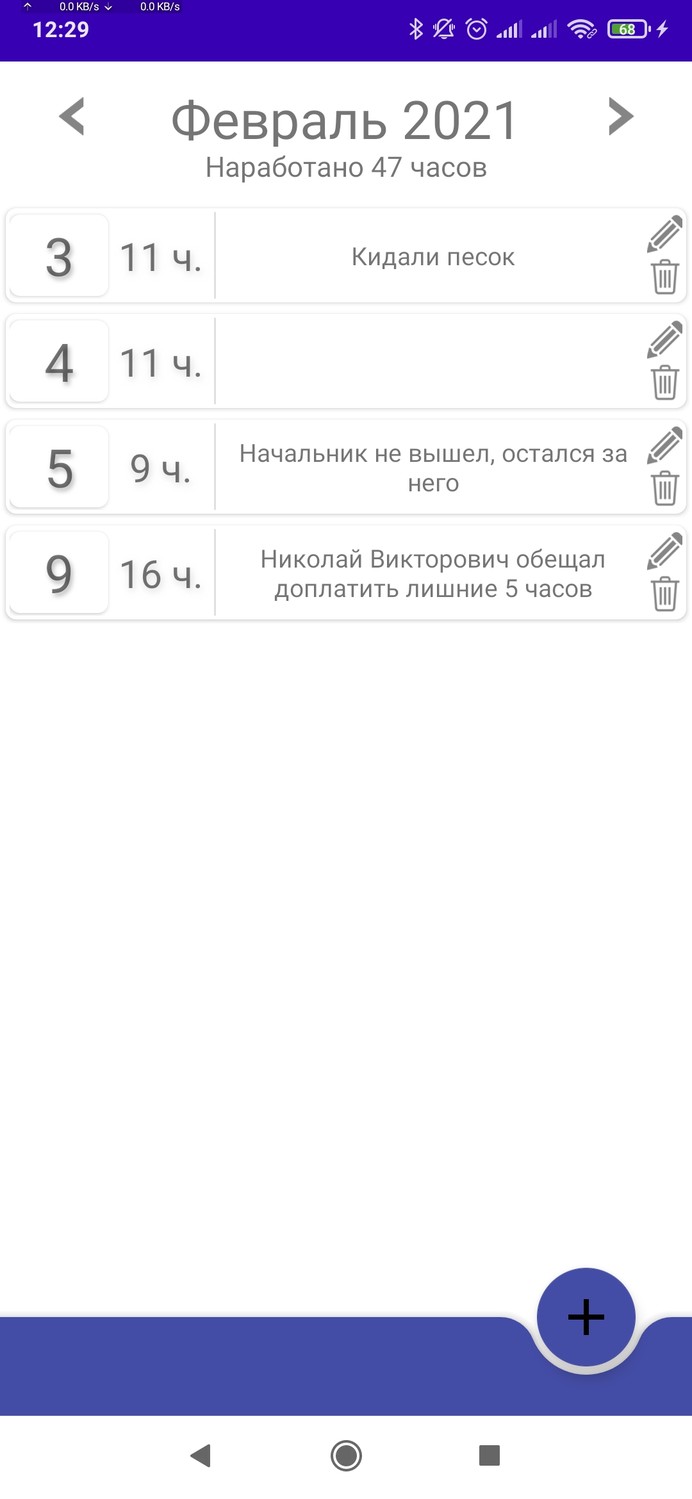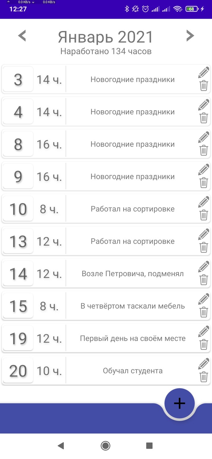 Вышла первая версия программы для тестирования "Табель часов".Функция программы простая - табелирование отработанных часов. Часто необходимо записывать, сколько часов вы отработали на своей работе, и не всегда это возможно сделать на бумаге, то ручки нет, то бумаги нет, то некогда и откладываешь на потом, и забываешь. Смартфон всегда с собой, в программе можно записать количество отработанных часов, затем эти часы посчитаются в итоговое за месяц. Сейчас статус в плеймаркете "Открытое тестирование"